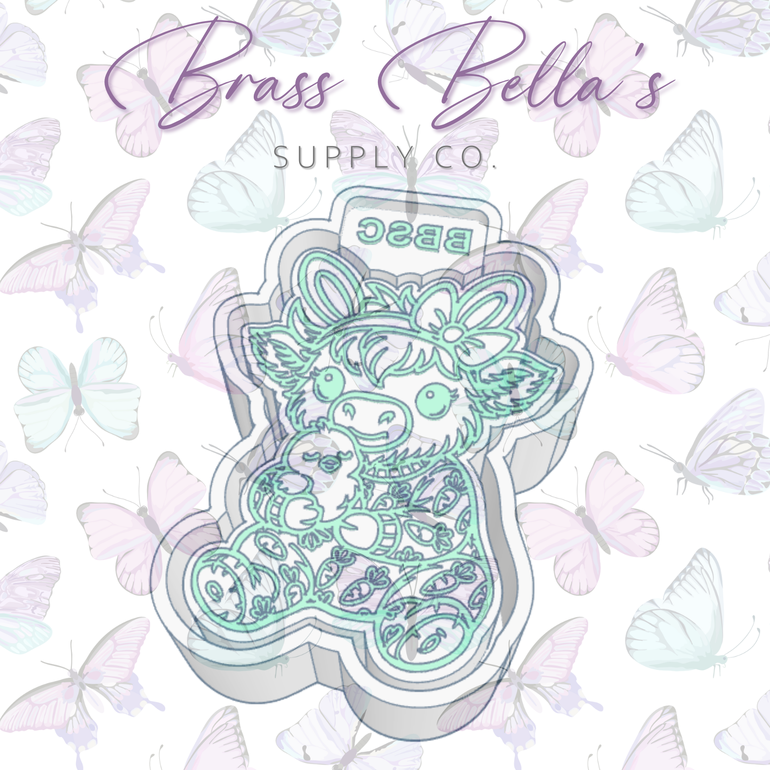 Highland Cow in Easter PJ's w/ Baby Chick - Freshie Mold